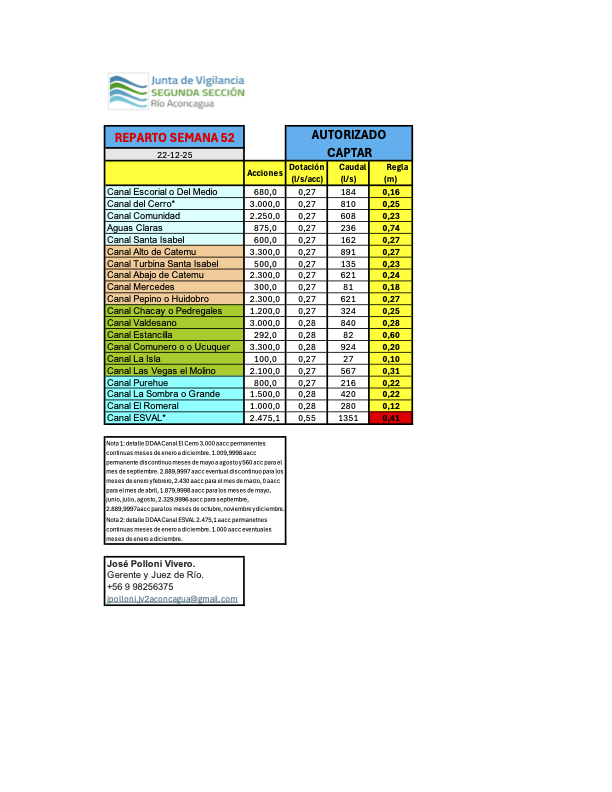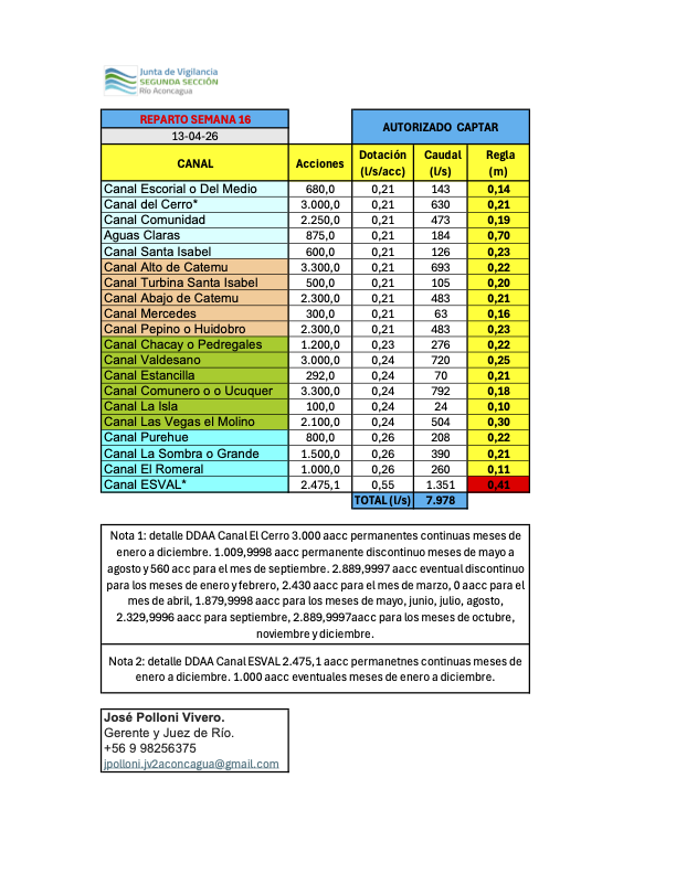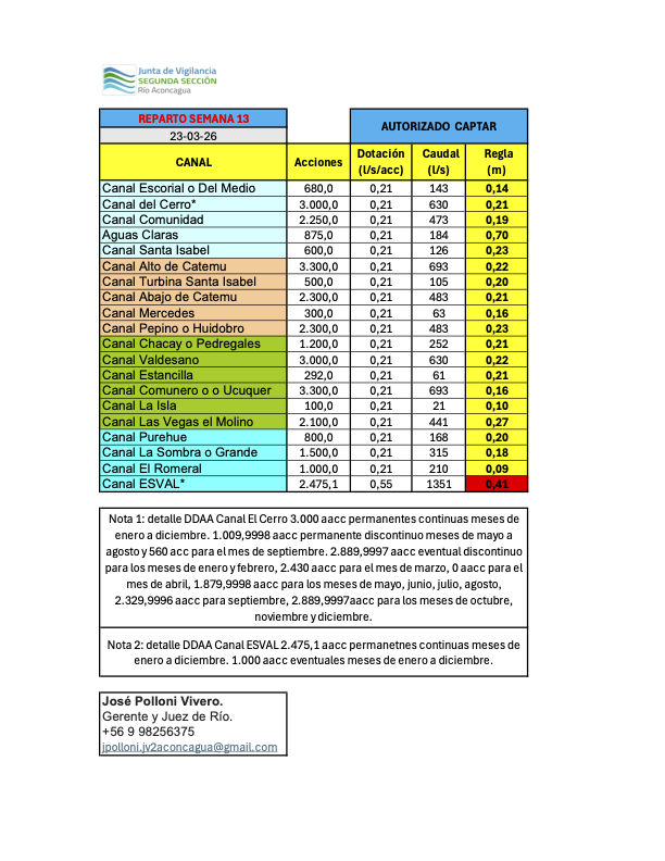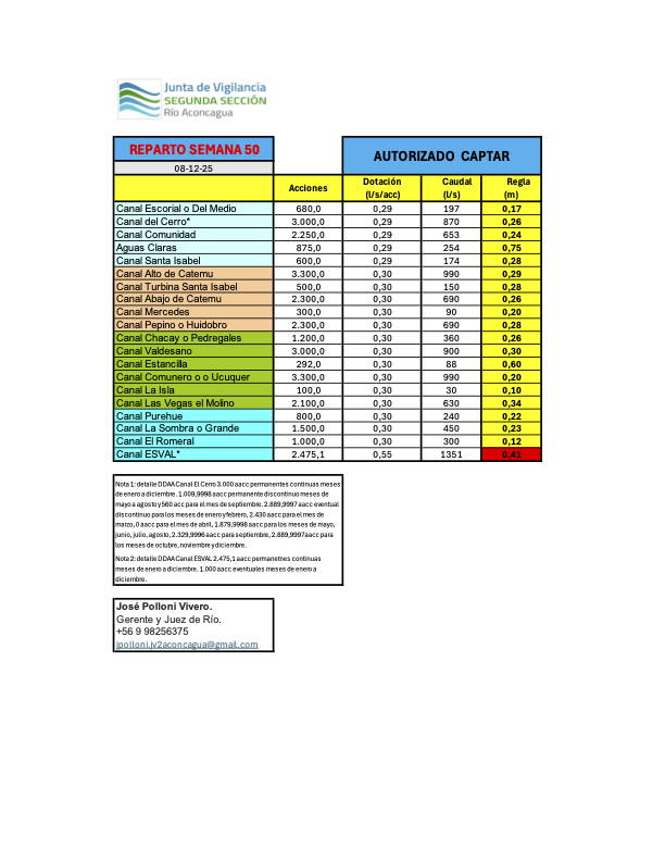 Administrar las aguas superficiales de la segunda sección del río Aconcagua y sus afluentes entre los miembros de la organización, promoviendo estudios, trabajos y obras orientados a mejorar la gestión y calidad del recurso en la cuenca.